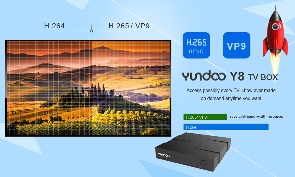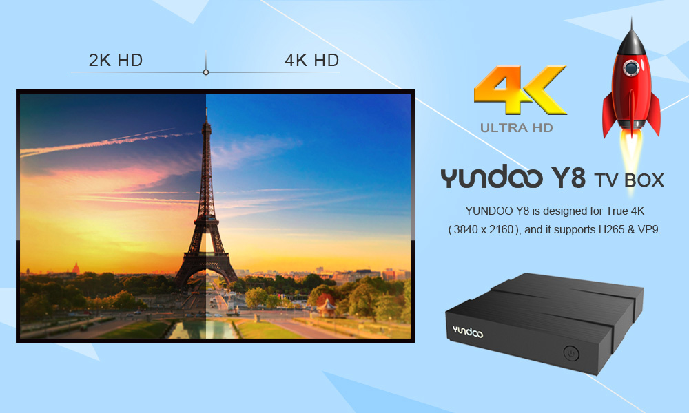 Package Contents: 1 x YUNDOO Y8 TV Box, 1 x Power Adapter, 1 x Remote Control, 1 x HDMI Cable, 1 x English User Manual