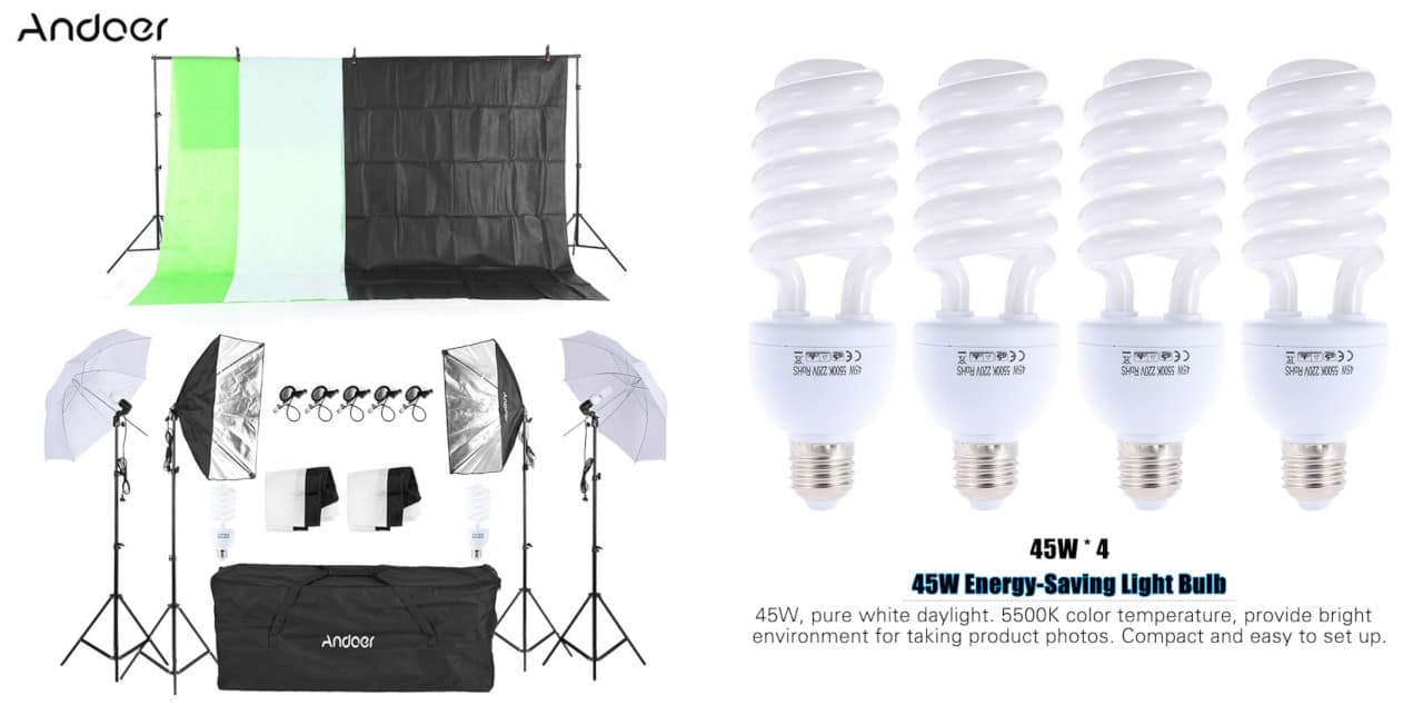 Σήμερα το TomTop έχει μία εκπληκτική προσφορά για όσους ασχολούνται επαγγελματικά ή ερασιτεχνικά με την φωτογράφιση σε Studio, καθώς μας προτείνει το πλήρες σετ Andoer Photo Studio Lighting Kit (Πλήρες ΣΕΤ Φωτισμού Studio) στα 65,96€, από Ευρωπαϊκή Αποθήκη (Γερμανία) και με δωρεάν αποστολή.