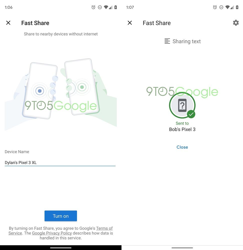Τώρα η Google εργάζεται σε μία εναλλακτική λύση που ακούει στο όνομα “Fast Share” και είναι παρόμοια με το AirDrop της Apple σε iOS και Mac. Ωστόσο, η καλύτερη σύγκριση θα ήταν με το Files Go της Google, τόσο σε επίπεδο λειτουργικότητας όσο και σε επίπεδο περιβάλλοντος εργασίας.