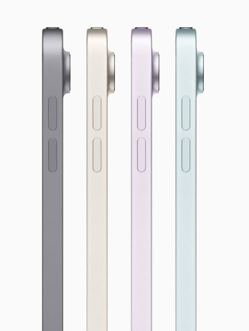 Τα νέα μοντέλα iPad Air διαθέτουν οθόνη LCD Liquid Retina και τα δύο μεγέθη διατίθενται σε διάφορα χρώματα, όπως το νέο μπλε, το νέο μοβ, το Starlight και το Space Grey, καθώς και σε ένα νέο περίβλημα από 100% ανακυκλωμένο αλουμίνιο.