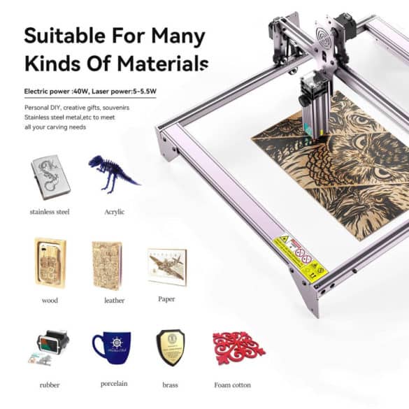 Support Carving Objects: Wood, bamboo, cardboard, plastic, leather, PCB board, aluminum oxide, non-reflective electroplating layer and paint surface layer metal, 304 mirror stainless steel, glass, ceramics, cotton cloth, slate;