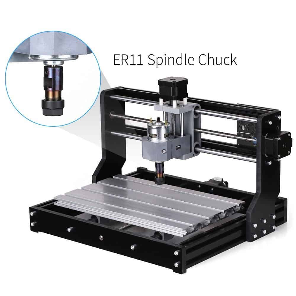 - Έχει μεγάλη επιφάνεια εργασίας στα 300 x 180 x 45 mm, και λογισμικό ελέγχου: GRBL (συμπεριλαμβάνεται τσοκ ER11).