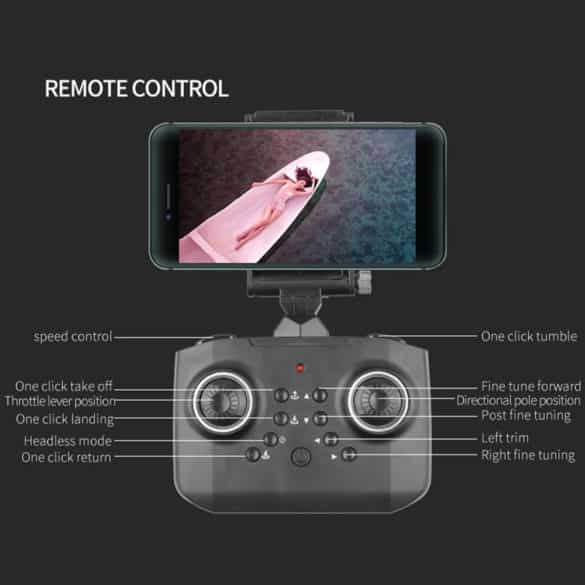 - Function: Trajectory flight, headless mode, take photo/video, One key takeoff and landing, LED lights, one-button automatic return, altitude holding mode, 360° flip, etc.