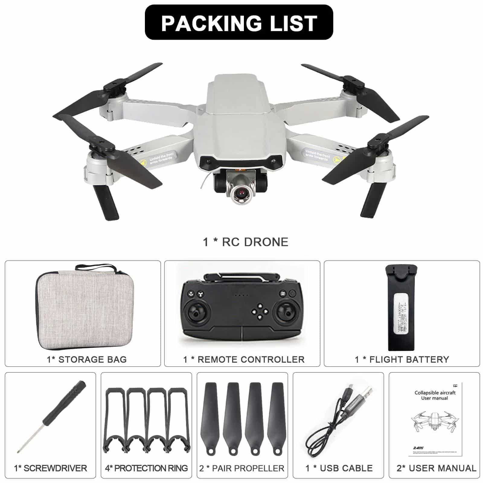 - Function: Trajectory flight, 3D flight, headless mode, auto-hover, emergency stop, one-key takeoff/landing, take photo/video, speed adjustment, etc.