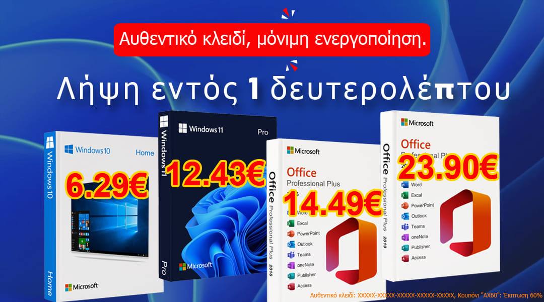 Είτε χρειάζεστε τα Windows 10 LTSC (Home/Pro) είτε θέλετε να κάνετε αναβάθμιση στα Windows 11, αποκτήστε αυθεντικές άδειες χρήσης σε τιμές πολύ χαμηλότερες από τις επίσημες τιμές της Microsoft (από μόλις 6 €!), με 100% νόμιμη ενεργοποίηση, μηδενικό κίνδυνο από μη ασφαλή εργαλεία.