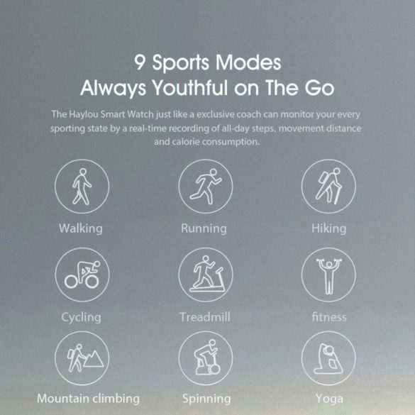 - Haylou LS01 smartwatch supports 9 sport modes, including walking, running, hiking, cycling, treadmill, fitness, mountain climbing, spinning, yoga.