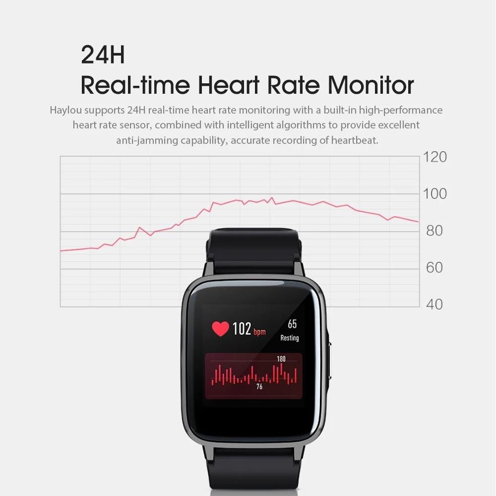 - Haylou LS01 smartwatch built-in high-performance heart rate sensor, combined with intelligent heart rate algorithm, makes it have better anti-interference ability, while accurately recording the user’s heart rate every day, escorting user’s health 24 hours.