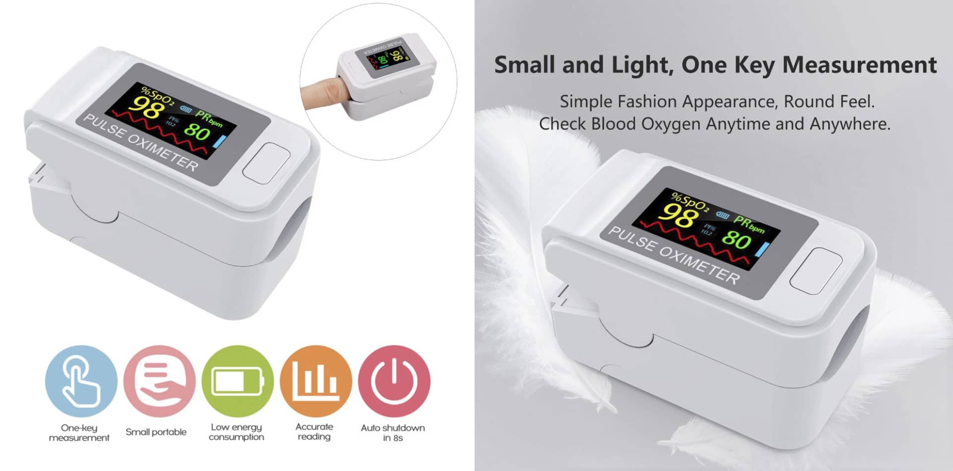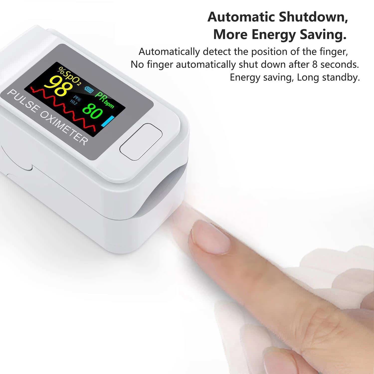 Automatic shutdown: when no finger is inserted, it will automatically shut down within 5 seconds