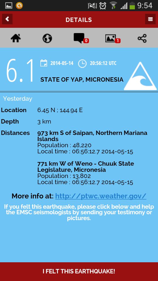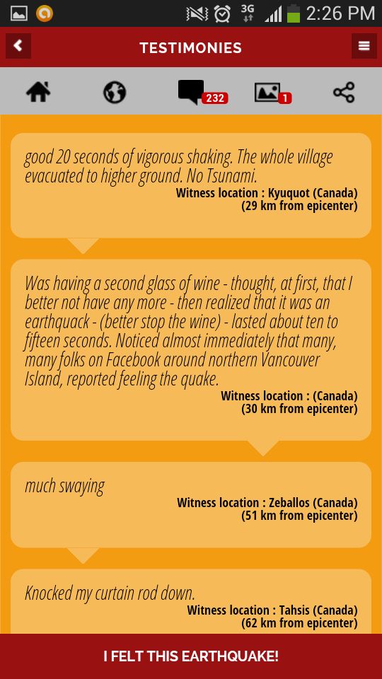 Η γρήγορη λήψη των δεδομένων ενός σεισμού θα σας βοηθήσει να εκτιμήσετε την κατάσταση, αλλά να παρέχετε αν το θέλετε τα σχόλιά σας στο Ευρωπαϊκό Σεισμολογικό κέντρο, βοηθώντας στην καταγραφή στατιστικών από τους σεισμολόγους.