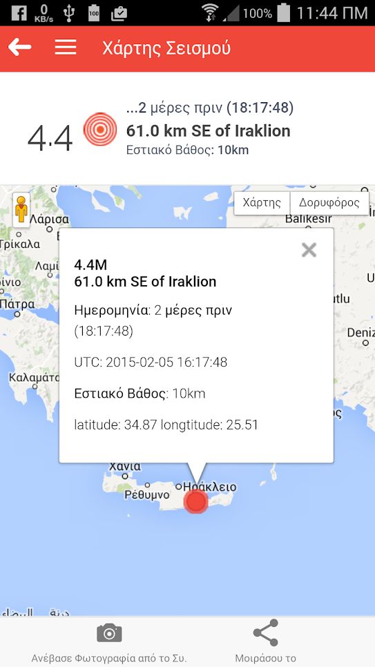 Αυτή η εφαρμογή καταγράφει αποκλειστικά τους σεισμούς που γίνονται ΜΟΝΟ στην χώρα μας, καταγράφοντας μάλιστα και όλα τα μικρά σεισμικά γεγονότα που είναι και κάτω του ενός βαθμού της κλίμακας Ρίχτερ.