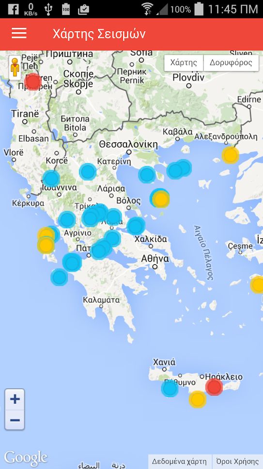 Δείτε όλους τους σεισμούς που συμβαίνουν στην Ελλάδα. Ειδοποιήσεις σε πραγματικό χρόνο για σεισμούς μεγαλύτερους από 3R. Χάρτης αποτύπωσης Σεισμού και δυνατότητες φωτογράφησης και προβολής συμβάντων. Τα δεδομένα προέρχονται από 4 διαφορετικούς παρόχους για μεγαλύτερη ενημέρωση: