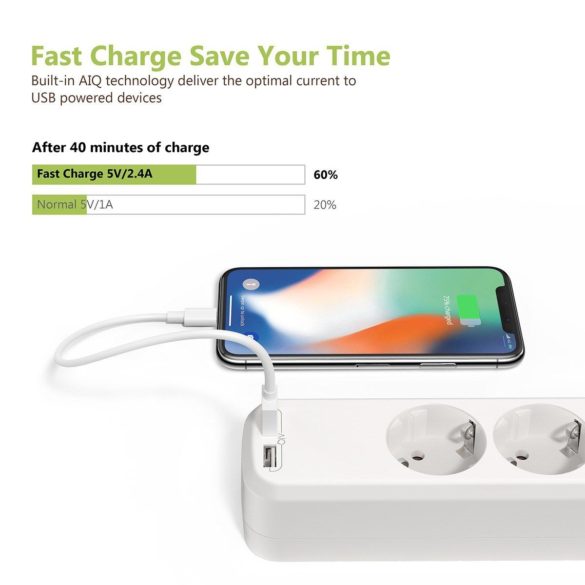 Το Dodocool σου προσφέρει 4 θέσεις παροχής (Σούκου)  με 2 θύρες φόρτισης USB, που σας επιτρέπουν να τροφοδοτείτε ταυτόχρονα έως και τέσσερις συσκευές, και δύο Smartphone ή Tablet που φορτίζουν με USB.
