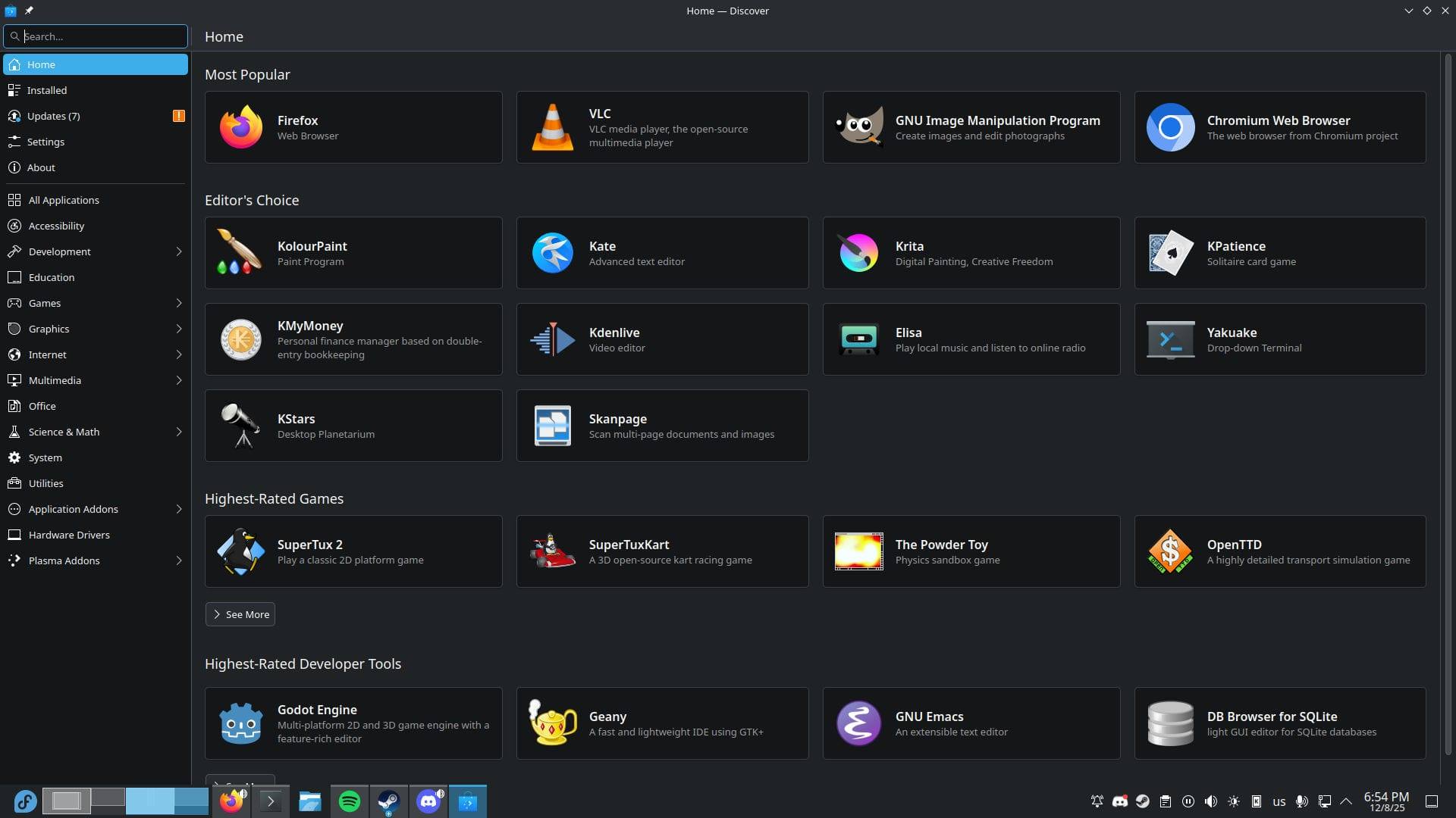 Όλα μέχρι στιγμής δουλεύουν άψογα. Οι εφαρμογές κατεβαίνουν, κάνουν εγκατάσταση και ανοίγουν χωρίς κανένα απολύτως σφάλμα. Και στην περίπτωση που υπάρχει κάποια εφαρμογή την οποία θέλω και δεν βρίσκω (όπως Spotify), είναι δυνατή η προσθήκη επιπλέον πηγής εφαρμογών μέσα στο Discover, ονόματι Flathub, η οποία προσφέρει ακόμα πιο μεγάλη γκάμα εφαρμογών.