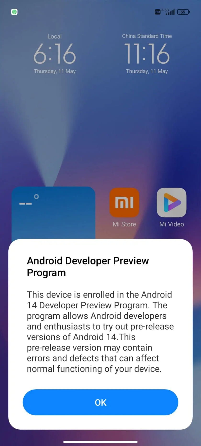 Μόλις η συσκευή κάνει εκκίνηση στο Android 14, θα εμφανιστεί ένα αναδυόμενο παράθυρο που σας ενημερώνει για το BETA λογισμικό που εγκαταστήσατε και σας προειδοποιεί ότι αυτή η έκδοση δεν είναι σταθερή και δεν είναι καλή για καθημερινή χρήση.
