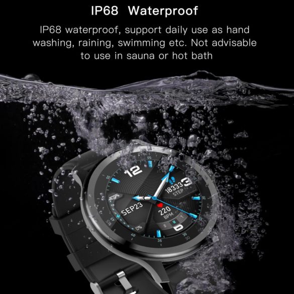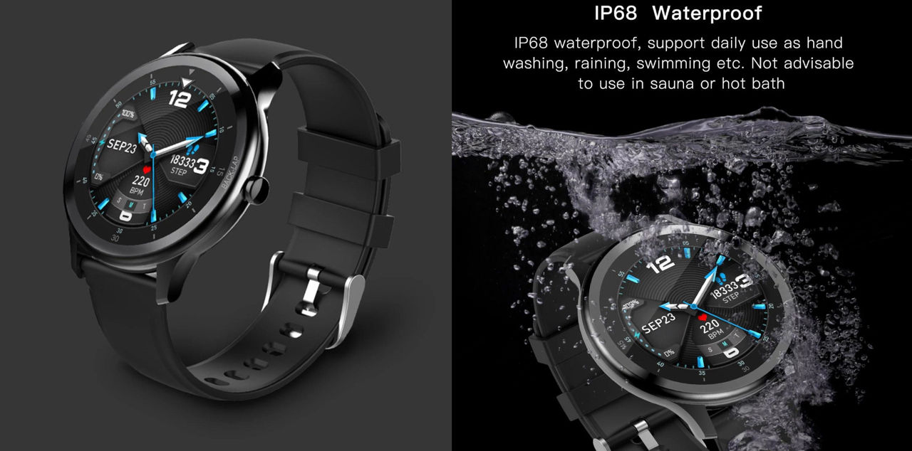 Αυτό το Smartwatch διαθέτει οθόνη αφής 1,28 ιντσών με εξαιρετικά ευαίσθητο έλεγχο αφής, ενώ είναι και αδιάβροχο (πιστοποίηση IP68) ώστε μπορείτε να το φορέσετε στο κολύμπι ή στο ντους (αλλά καλό είναι να αποφεύγετε το καυτό – ζεστό νερό).