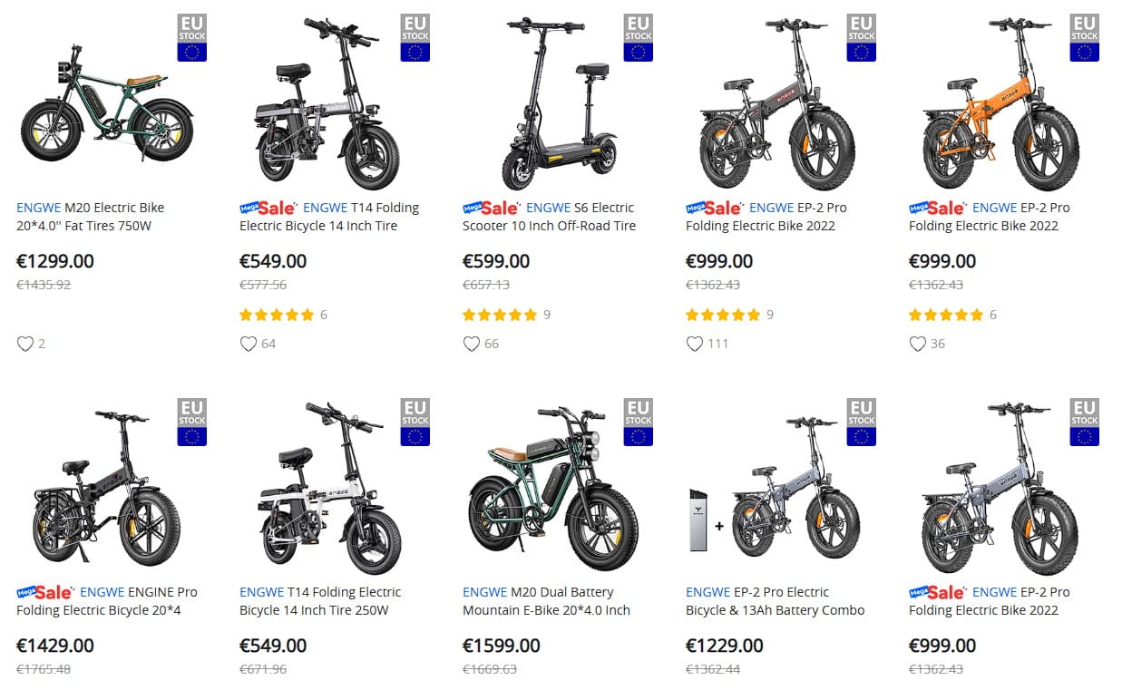 Εαν σας ενδιαφέρει η αγορά κάποιου αξιόλογου ηλεκτρικού ποδηλάτου ή Scooter, το Geekbuying μας προτείνει την μεγάλη γκάμα ηλεκτρικών ποδηλάτων από την ENGWE σε πολύ καλές τιμές και με δωρεάν αποστολή από Ευρώπη.
