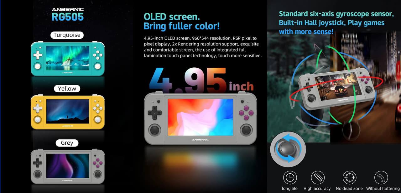 Το ANBERNIC RG505 είναι μια φορητή κονσόλα ρετρό παιχνιδιών εξαιρετικής απόδοσης με ανάλογικά χειρηστήρια Hall effect. “Τρέχει” το Android 12, και έχει εύκολη ενημέρωση υλικολογισμικού μέσω του Google Play Store.