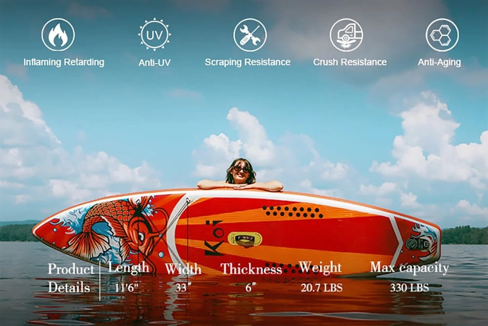 Σταθερός οδηγός: Η φουσκωτή σανίδα κωπηλασίας είναι στα 350 x 84 x 15 cm σε μέγεθος, αλλά πολύ ελαφριά καθώς ζυγίζει μόλις 12 κιλά. Φυσικά, τα sups διατηρούν επίσης μέγιστη ασφαλή πίεση στα 15-18 psi και το μέγιστο βάρος αναβάτη είναι μέχρι 150 κιλά, καθιστώντας το ιδανικό τόσο για τους αρχάριους όσο και τους προχωρημένους χρήστες.