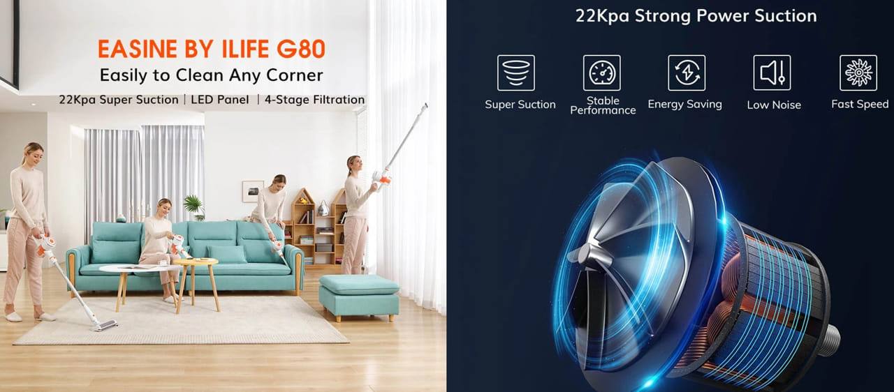 Geekbuying : ILIFE G80 Cordless Handheld Vacuum Cleaner (22Kpa Suction with Spinning Side Brush) στα 74,99€ με δωρεάν αποστολή από Ευρώπη