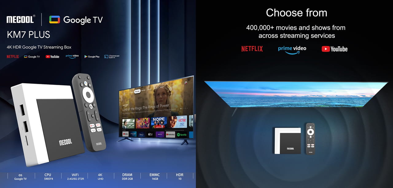 Το KM7 PLUS TV Box “τρέχει” το Android 11.0 OS με τετραπύρηνο επεξεργαστή (S905Y4 A53), το οποίο διασφαλίζει ότι θα φορτώνει σταθερά και ομαλά ταινίε, εικόνες και παιχνίδια χωρίς buffering. Έχει ενσωματωμένο πλούσιο ψυχαγωγικό από το οικοσύστημα του Android, συμπεριλαμβανομένων των 4K Netflix, YouTube, Prime Video, Disney Plus κ.λπ., για να το απολαύσει όλη η οικογένεια.