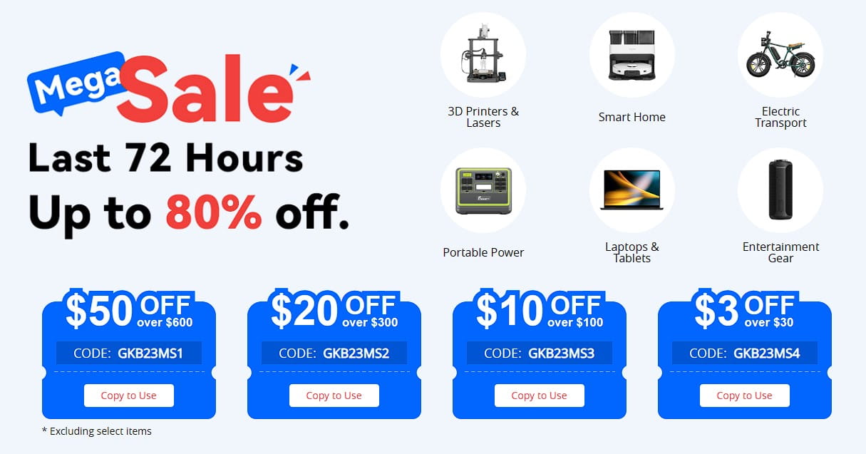 Σήμερα το GeekBuying ξεκίνησε το MEGA SALE με τρελές προσφορές και κουπόνια, με εκπτώσεις που φτάνουν μέχρι και το 80%, αλλά δυστυχώς είναι μόνο για λίγες ώρες, οπότε τυχεροί θα είναι όσοι προλάβουν να εκμεταλλευτούν γρήγορα τις προσφορές τους.