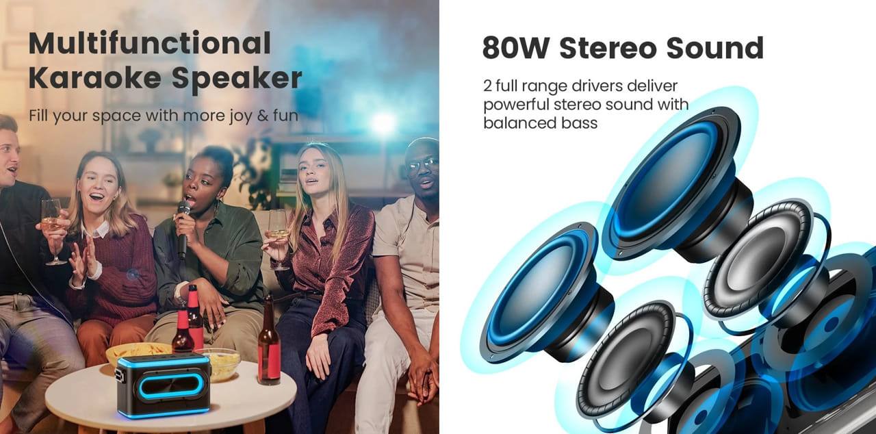 SOUNARC A1 Karaoke Speaker (80W Output, Dual Mic)