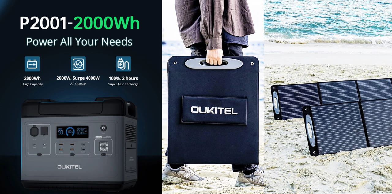 OUKITEL P2001 Ultimate 2000W Portable Power Station + PV200 200W Foldable Solar Panel