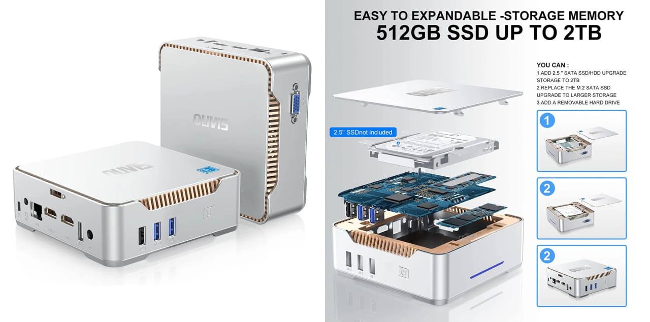 OUVIS GK3 Plus Mini PC (Intel Alder Lake N-95, 16GB DDR4 RAM 512GB SSD)