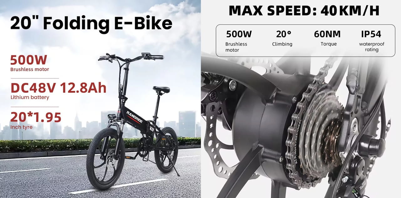 RANDRIDE YA20 Electric Bike (500W Motor 40km/h Max Speed)