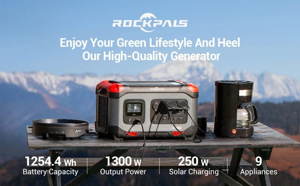Είναι εφοδιασμένο με 1254.4Wh (39200mAh) μπαταρία LiFePO με ονομαστική ισχύ στα 1300W, και το Rockpals RP1300 μπορεί να φορτίσει συσκευές υψηλής ισχύος όπως φορητά ψυγεία και καφετιέρες, και είναι ιδανικό για κάμπινγκ, στο βαν και άλλες υπαίθριες δραστηριότητες, αλλά και για την χρήση έκτακτης ανάγκης για 3 – 5 ημέρες. Η γεννήτρια διαθέτει επίσης ρυθμιζόμενη τάση στα 12V για να διατηρεί σταθερή την τάση εξόδου της, ιδανική για χρήστες CPAP.