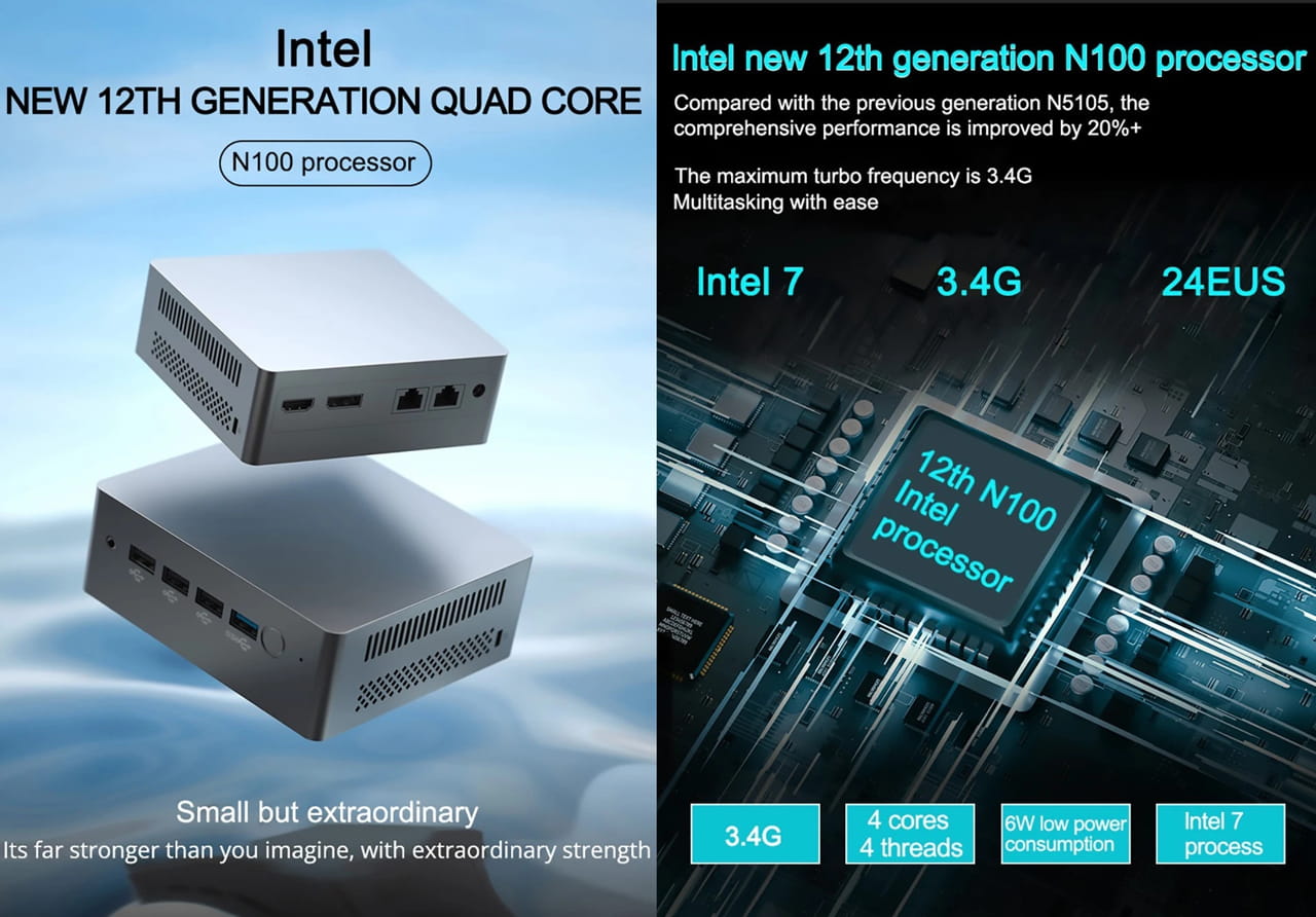 CPU: Intel 12th Gen Alder Lake N100 4 cores 4 threads up to 3.40GHz 6MB Cache TDP 6W