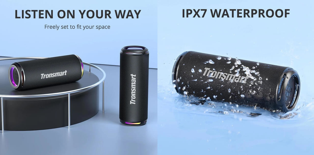 Το ηχείο της Tronsmart έχει πιστοποίηση IPX7 Rating, πράγμα που σημαίνει ότι μπορεί να χρησιμοποιηθεί στη βροχή και κατά το μπάνιο. Αυτό εξασφαλίζει την ασφαλή χρήση. Επιπλέον, μπορείτε να το ρυθμίσετε με όποιον τρόπο θέλετε για να ταιριάζει τέλεια στο δωμάτιό σας.