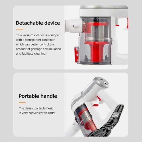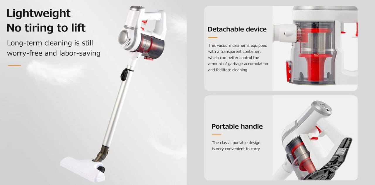 Αυτή η οικιακή ηλεκτρική σκούπα υιοθετεί τη λειτουργία της ασύρματης φόρτισης, η οποία είναι απαλλαγμένη από καλώδια, διευκολύνοντας τη λειτουργία της, ενώ το σώμα αυτής της συσκευής είναι πολύ ελαφρύ, γεγονός που μπορεί να μειώσει την επιβάρυνση κατά τη χρήση και να κάνει εύκολα τον καθαρισμό χωρίς κόπο.