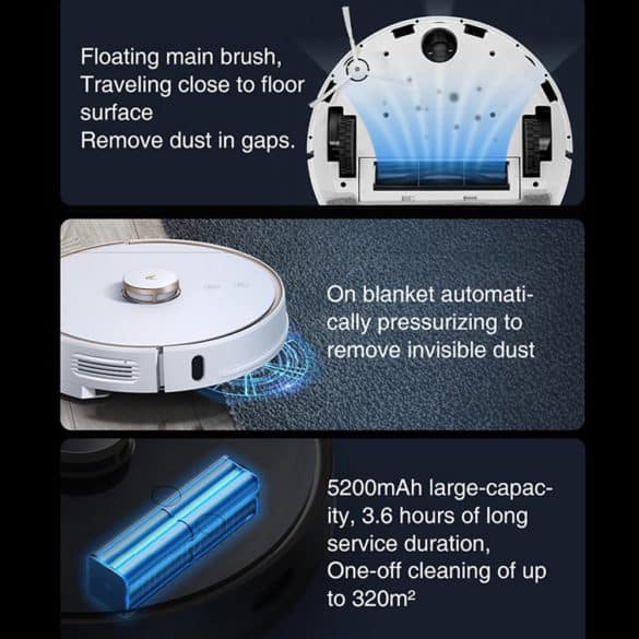 Η μπαταρία λιθίου στα 5200 mAh που έχει, παρέχει στην σκούπα μεγάλη διάρκεια μπαταρίας (αυτονομία) που φτάνει έως και τα 220 λεπτά χρήσης και μπορεί να καλύπτει έναν χώρο έως και τα 320 ㎡.