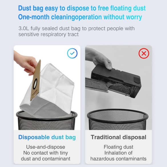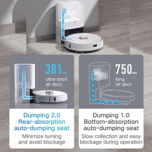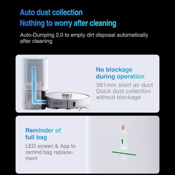 Features: Automatic dumping/S and Y mopping mode/Multi-storage map(1-5)/Auto recharge/3-layer HEPA filter/LED screen display