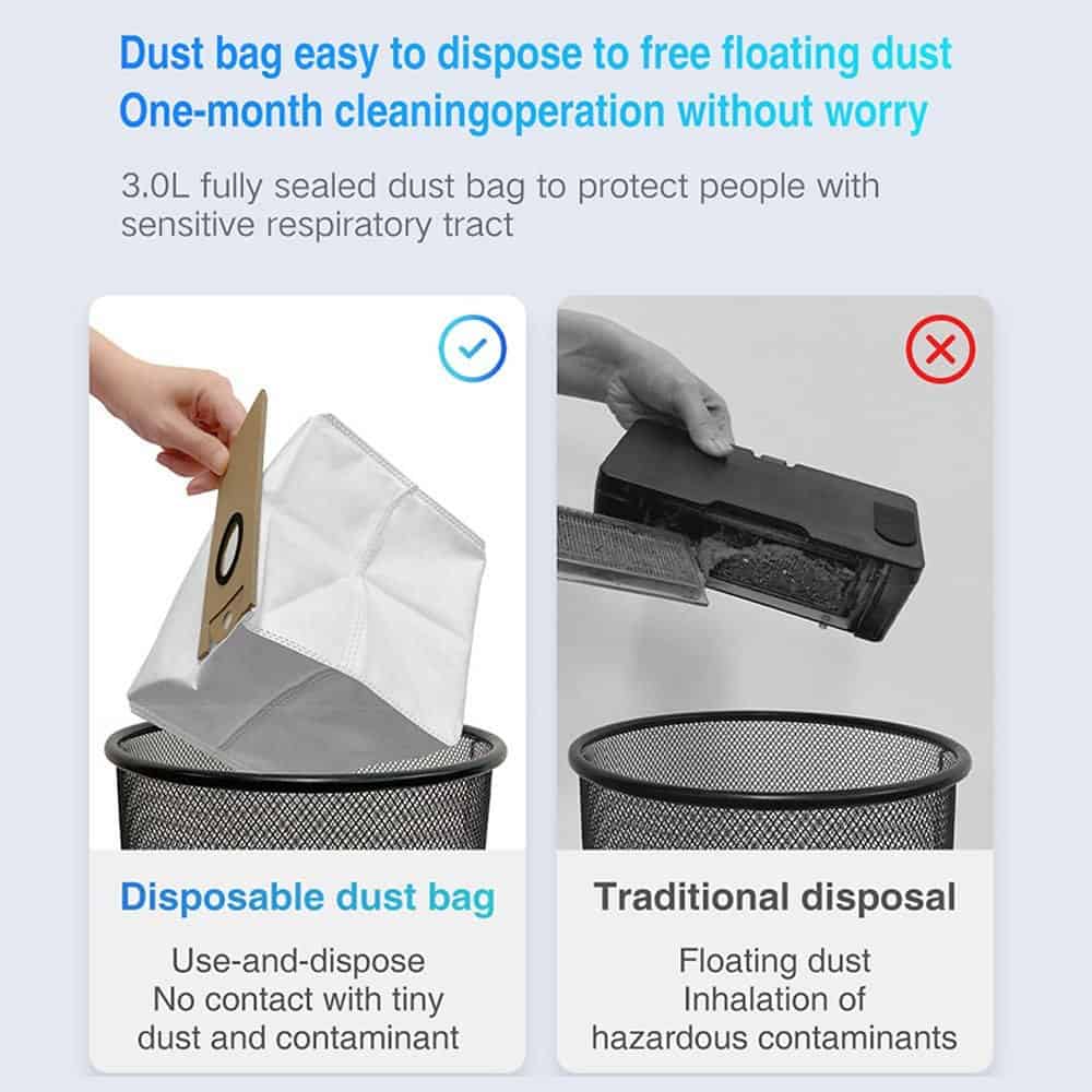 Διαθέτει επίσης και αναβαθμισμένος εξωτερικό συλλέκτη σκόνης (Κάδο) στα 3 λίτρα, που μπορεί να αποθηκεύσει έως και 30 ημερών βρωμιάς και υπολειμμάτων.