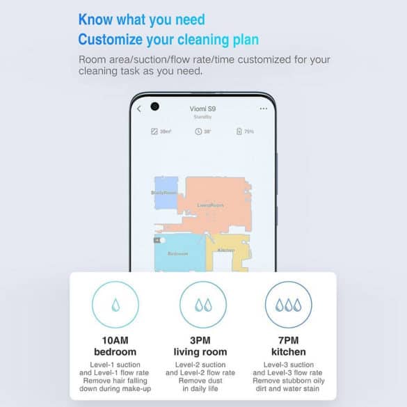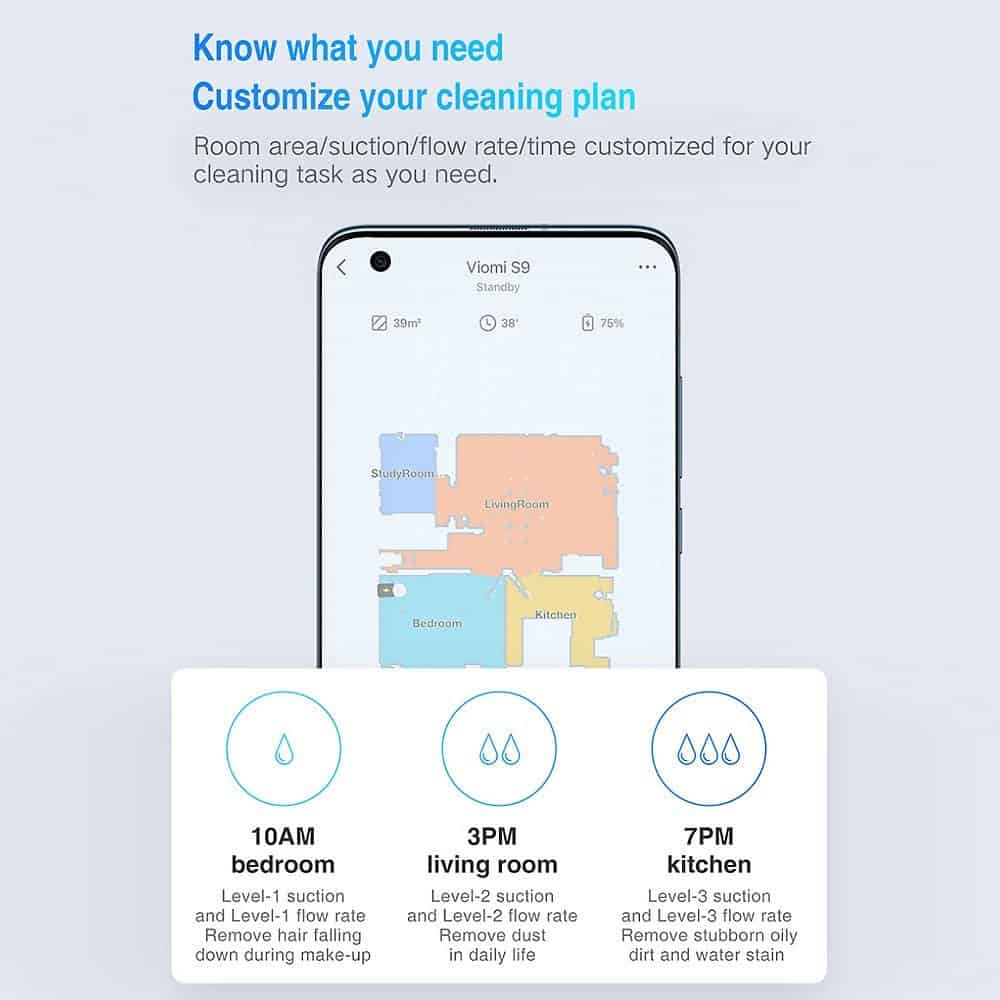 Μέσω της ειδικής εφαρμογής που θα εγκαταστήσετε στο Smartphone σας, μπορείτε να έχετε τον έξυπνου έλεγχο της σκούπας, και να προγραμματίσετε τον καθαρισμό που θέλετε στις ημέρες και ώρες που πρέπει να γίνει, αλλά ταυτόχρονα να επιλέξετε και συγκεκριμένα δωμάτια ή περιοχές.
