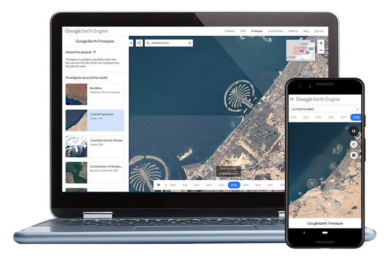Με την τελευταία αναβάθμιση της εφαρμογής προστέθηκε υποστήριξη του Timelapse για φορητές συσκευές, επανασχεδιάστηκε σε Material Design και προστέθηκαν δύο χρόνια επιπλέον πληροφορίας στα timelapse videos που μας δείχνουν πως άλλαξε ο πλανήτης από το 1984 μέχρι το 2018.