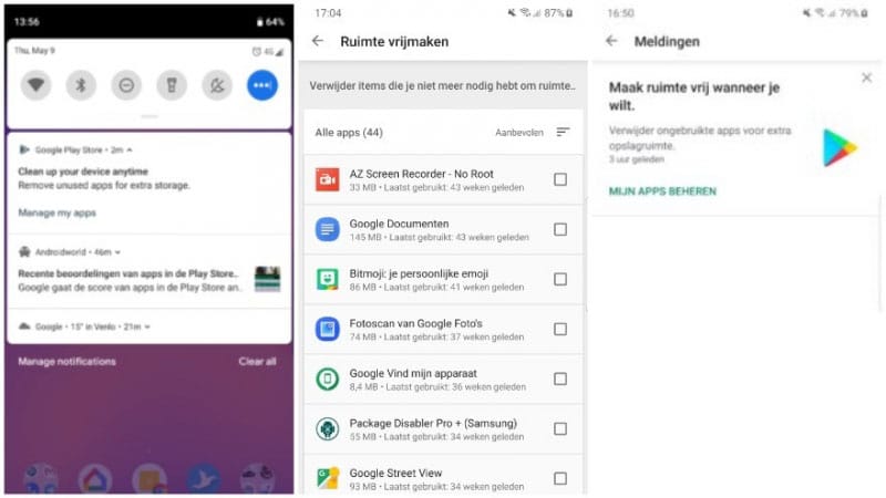 Όπως εντόπισε η ολλανδική ιστοσελίδα AndroidWorld, το κατάστημα Google Play θα εμφανίζει μια ειδοποίηση στον χρήστη που θα τους προτείνει να διαγράψουν συγκεκριμένες αχρησιμοποίητες εφαρμογές από τη συσκευή τους με σκοπό να απελευθερώσουν αποθηκευτικό χώρο.