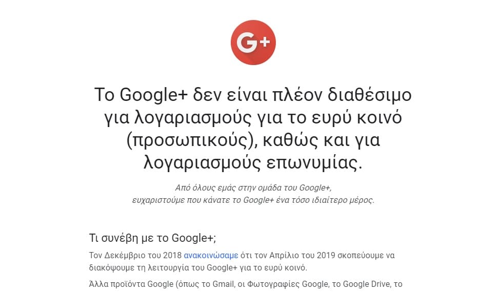Κατά τη διάρκεια της χθεσινής ημέρας (2 Απριλίου) είχαμε ακόμα τη δυνατότητα να χρησιμοποιούμε το λογαριασμό μας στο κοινωνικό δίκτυο Google+ και γι’ αυτό δεν προχωρήσαμε σε σχετική ανάρτηση.