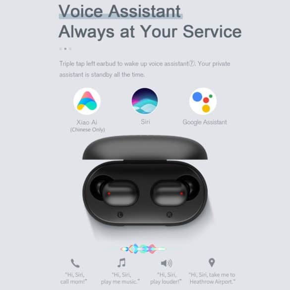 Siri/ Google Assistant are supported, triple tap to wake up the voice assistant.