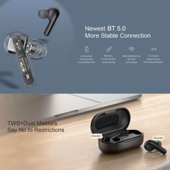 Είναι εξοπλισμένα με την Τεχνολογία ΒΤ5.0 που εξασφαλίζει την σταθερή και γρήγορη μετάδοση με χαμηλό λανθάνοντα χρόνο και χαμηλή κατανάλωση ενέργειας.