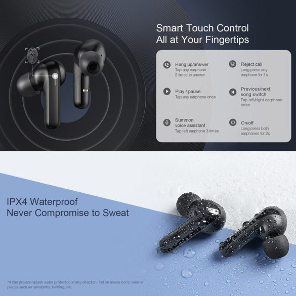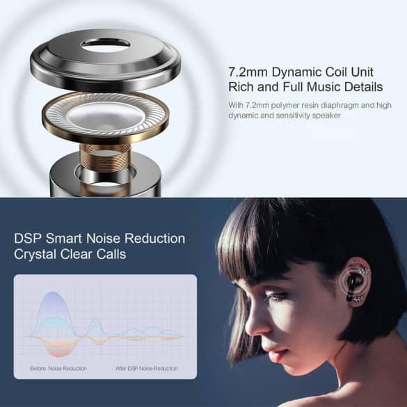Αυτά τα ακουστικά είναι εξοπλισμένα με τεχνολογία TWS και με δυναμικές μονάδες ηχείων 7,2 χιλιοστών, που σας προσφέρουν ποιοτικό στερεοφωνικό ήχο σε ολόκληρο το εύρος συχνοτήτων.