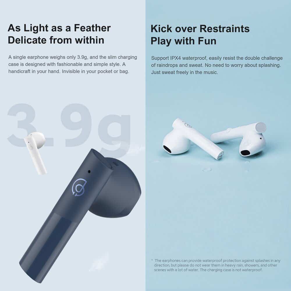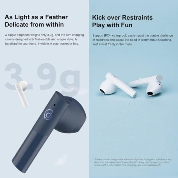 • With single earbud weighing 3.9g the compact and portable design delivers visible texture.