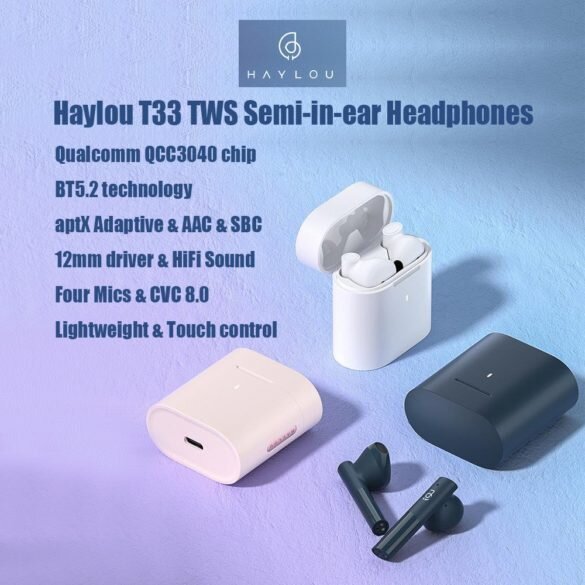 Τα νέα ακουστικά Haylou T33 είναι εφοδιασμένα με το τελευταίο τσιπ QCC3040 της Qualcomm με τεχνολογία BT 5.2 και ισχυρή αρχιτεκτονική επεξεργαστή τριών πυρήνων. Επίσης υποστηρίζουν και την τεχνολογία TrueWireless Mirroring της Qualcomm που προσφέρει βελτιωμένη στιβαρότητα στο σήμα και απρόσκοπτη εμπειρία χρήσης.