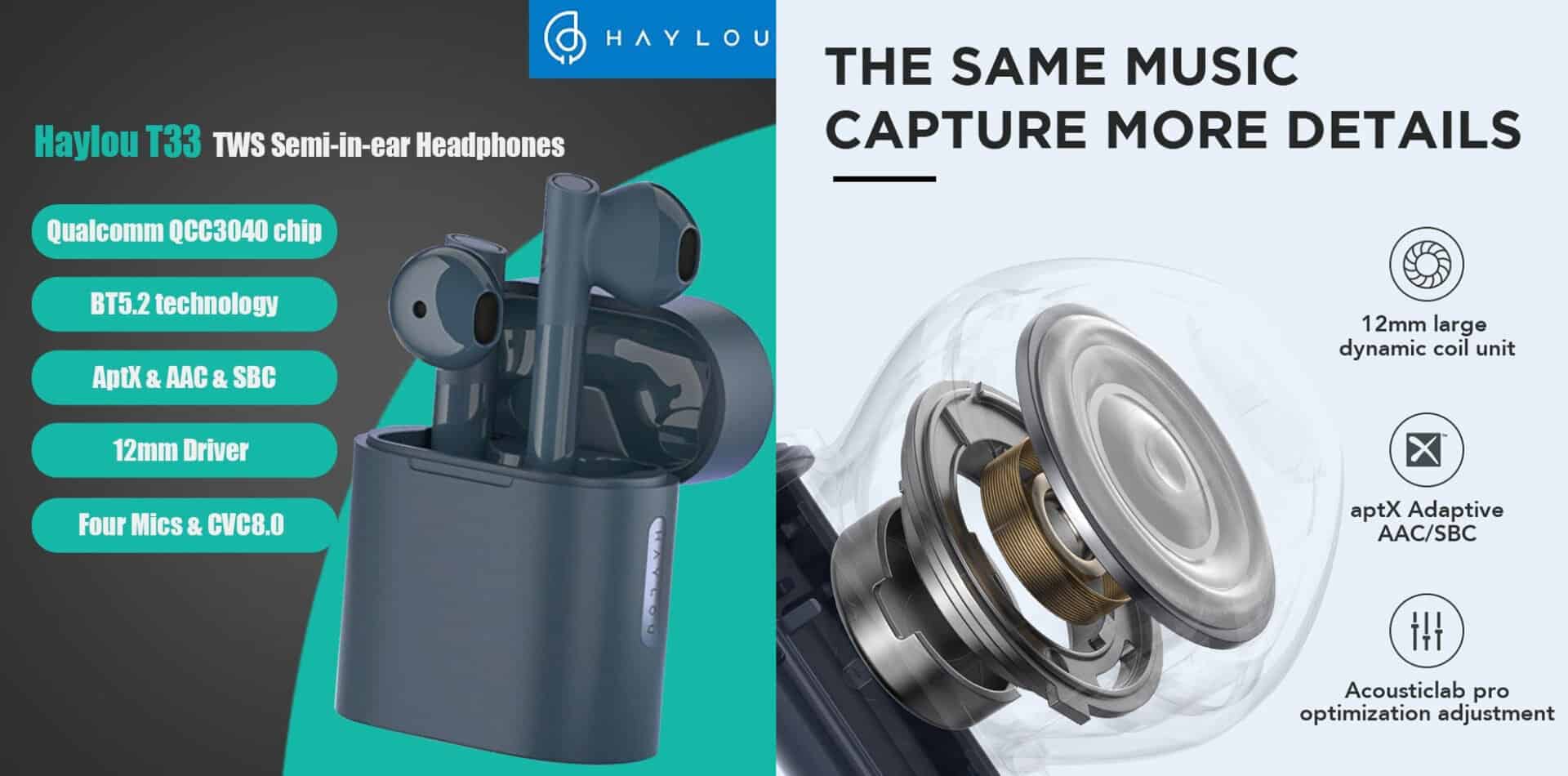 Αποκτήστε τώρα τα ακουστικά Haylou T33 BT5.2 Wireless Earphone Semi-in-ear Headphones στα 25,49€ με δωρεάν αποστολή