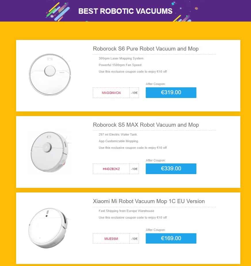 Παρακάτω σας έχουμε μία λίστα με τα κουπόνια που ισχύουν για τις ρομποτικές σκούπες :
