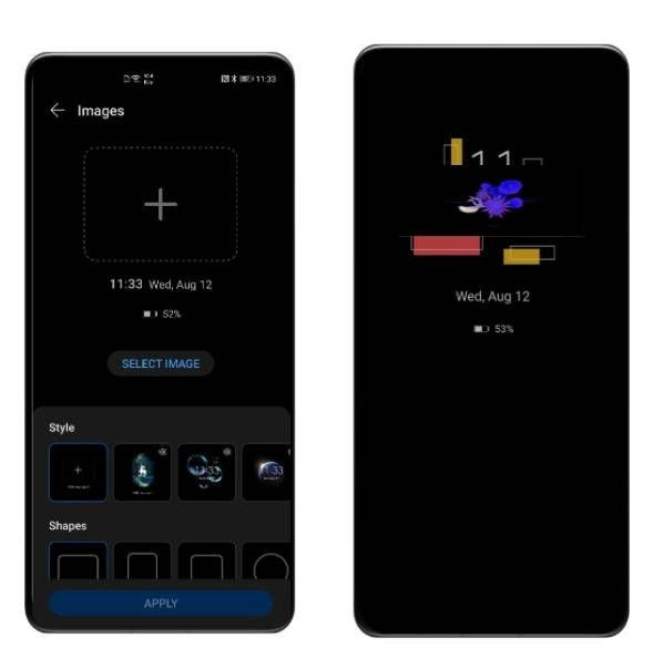 Η πρώτη φορά που είδαμε τη λειτουργία Always On Display σε smartphones της Huawei ήταν με την έλευση της έκδοσης EMUI 10. Αυτή τη φορά, η εταιρεία προσφέρει επιλογές διαμόρφωσης στα τρία διαθέσιμα themes (Piet Mondrian, Memphis, Mobius Strip), υπό την έννοια ότι ο χρήστης μπορεί να αλλάξει τα χρώματα και τη διάταξη των εικονιδίων. Επίσης, υπάρχουν τα κλασικά faces για το ρολόι, δυναμικές κινήσεις για τα στοιχεία που εμφανίζονται στην AOD και η δυνατότητα να περάσεις δικές σου φωτογραφίες, live photos ή animated gifs.