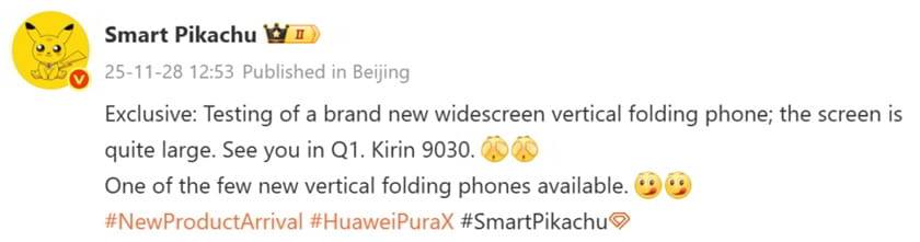 Το Huawei Pura X2 προορίζεται να είναι η συνέχεια του φετινού Pura X. Μια νέα διαρροή από τον leakster Smart Pikachu, φανερώνει πως το νέο foldable smartphone αναμένεται να κυκλοφορήσει κατά το πρώτο τετράμηνο του 2026.