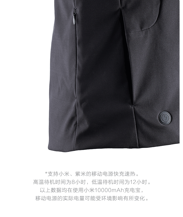 Επιπλέον, για έναν καλύτερο έλεγχο της θερμοκρασίας, το μπουφάν σας παρέχει επίσης μια άνετη κουκούλα. Το powerbank που τροφοδοτεί το κύκλωμα θέρμανσης, δεν συμπεριλαμβάνεται στην συσκευασία κατά την αγορά του, αλλά μπορείτε να χρησιμοποιήσετε power banks από 5V έως και 9V. Η προτεινόμενη θερμοκρασία κυμαίνεται από 40 έως 50 ° C